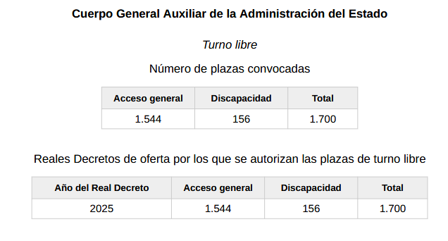 - Graduado en ESO o equivalente para el Cuerpo de Auxiliar Administrativo.